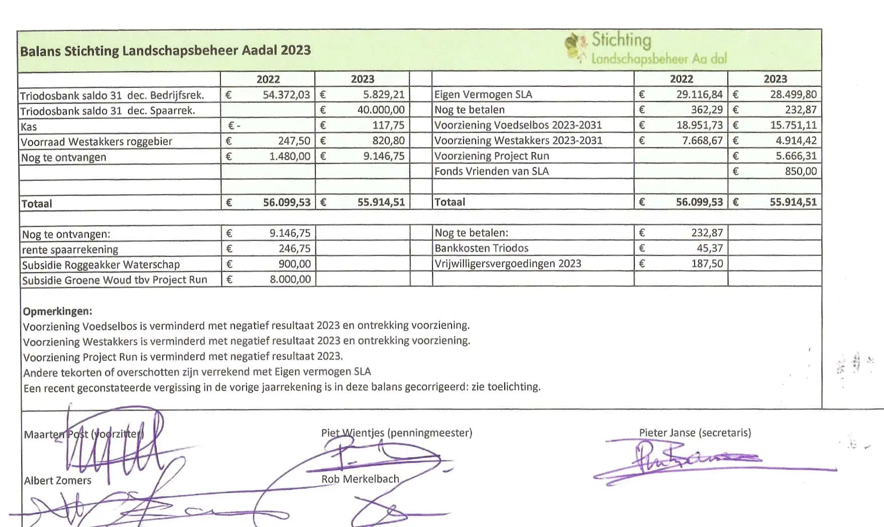 We zijn een stichting met een bestuur en een aantal actieve werkgroepen. Geen eigen grond, wel de zorg voor verantwoord beheer. We beheren percelen in opdracht van eigenaren, vooral de gemeente. Het werk wordt gedaan door vrijwilligers, soms geholpen door professionals. Onze inkomsten komen uit vergoedingen voor beheer, bijdragen van ‘vrienden van SLA’, sponsors én subsidies waar dat kan.
